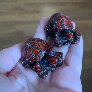 Small turtles 🐢 they are some type of glass material. Red color small turtles 🐢
