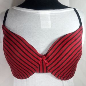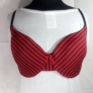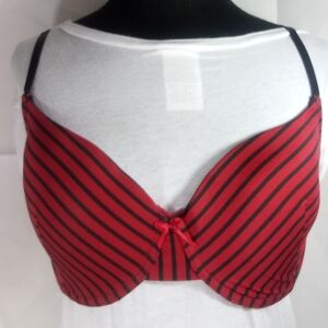 Red underwire t-shirt bra with black stripes