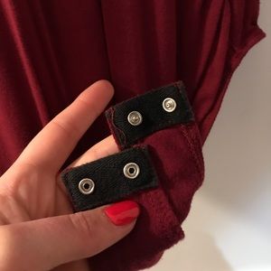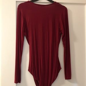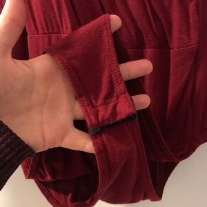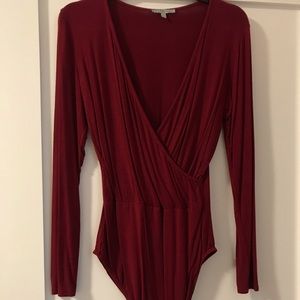 V neck red body suit with two snaps at the bottom. Only wore it a couple times. Super soft and comfy!!