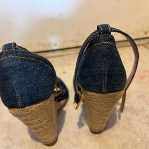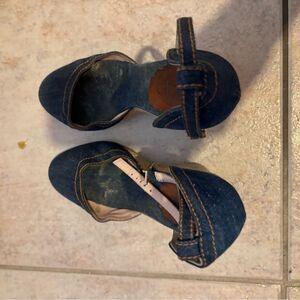 Red valentino sandals blue jean heels cloth wedges denim dress shoes platform