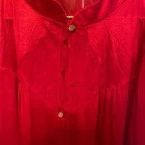 Beautiful satin red vintage short sleeve housecoat by La Notte. No size, however, it appears to be a small. In perfect condition