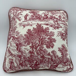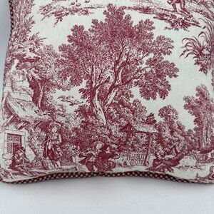Red white Toile Throw Pillows French Country Check Piping 15" x 15"