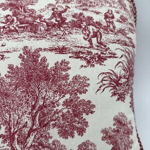 Red white Toile Throw Pillows French Country Check Piping 15" x 15" Farm