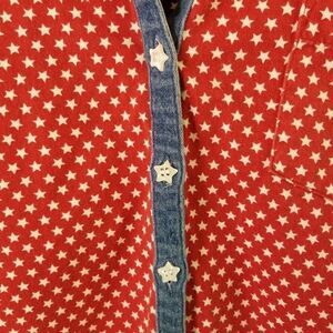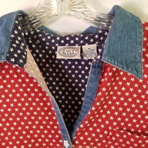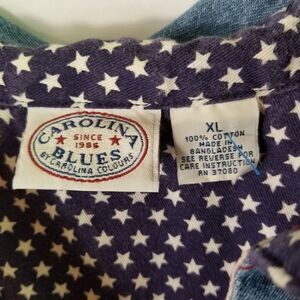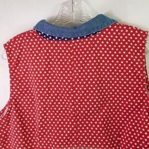 Size XL. Approximate measurements are pit to pit 23". Length is approximately 24". Sleeveless. Good used condition. Cute star buttons.