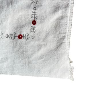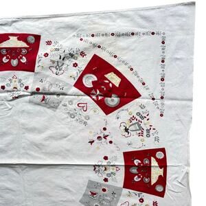 Red & white cotton tablecloth Pennsylvania Dutch motif mid century minor FLAWS