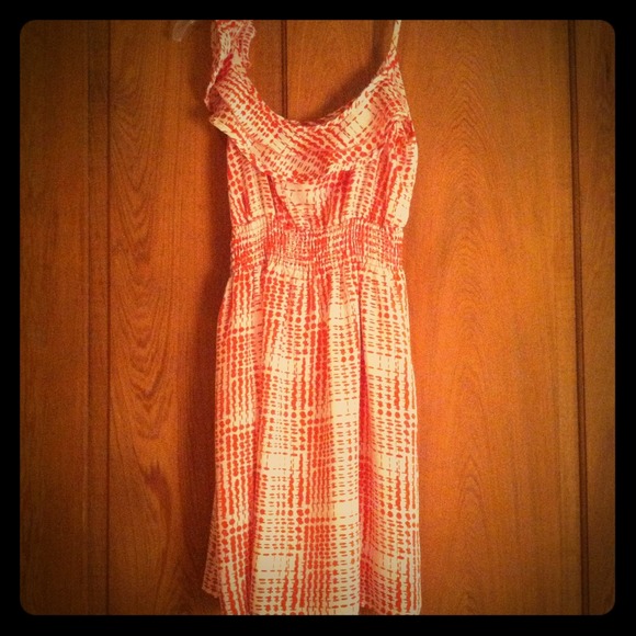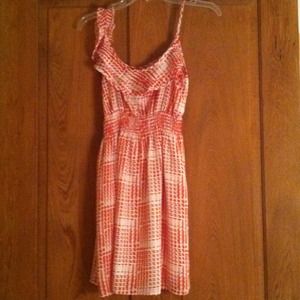 Silky houndstooth dress. Gathered elastic waist makes it really flattering. Cascading ruffle top with spaghetti straps. Hits above the knee. Lined. Prices negotiable. Make an offer!
