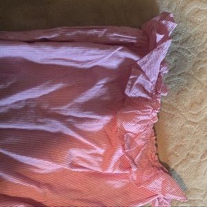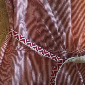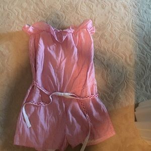 Gatrimon Shorts romper. Has cute ruffle at top and cute belt to match. I got it at a boutique. The blue and white is a Sample of what it looks like on. But the one being sold is red and white. Price is as low as I will go. You will get a great deal. No holes or blemishes worn once.