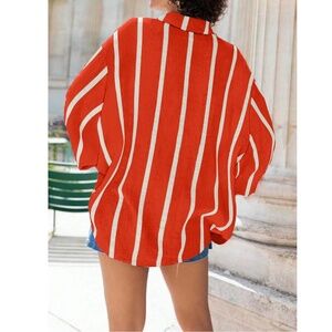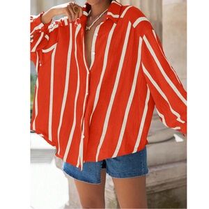 Red with White Stripes Oversized Button Down Shirt Long Sleeve