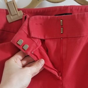 Classy red work pants from LOFT. Thick and flattering in great shape with a wide waist band and straight ankle cut in Julie. Back seams all the way down legs and slit back pockets.