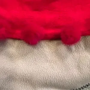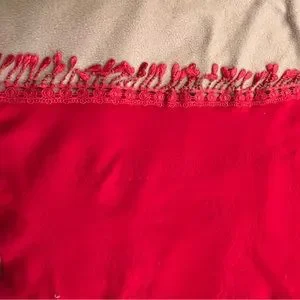 Wrap has printed design and puff balls along edging