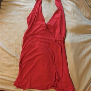 Dark red soft wrap dress by MIXIT stretch. Rayon/Polyestor blend.