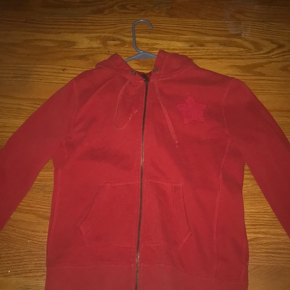 Red zip up jacket with a red star on the front and white stars on the inside of the hood. Never worn.