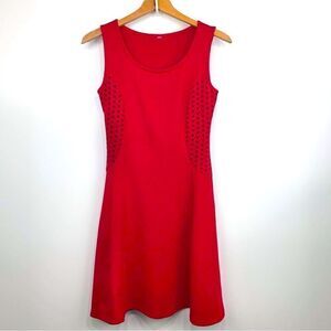 Red A-Line Sleeveless Stretch Dress with Laser Cut Sides