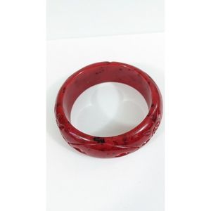 Red And Black Speckled Plastic Flower Bangle Bracelet