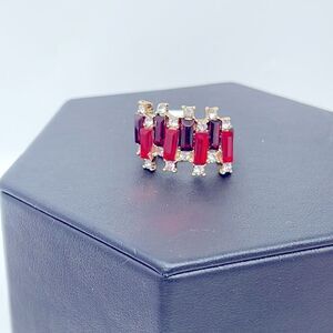 Red Baguette Crystal Rhinestone Gold Band Ring