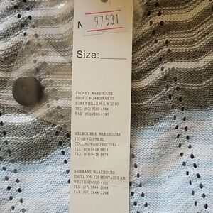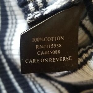 Shades of Blue, Grey and White Dropped Shoulder Sweater Vest. Chevron Pattern and Horizontal Stripes. 4 Button Closure, 100% Cotton. This would look Really Cute over a Shirt Sleeve t-shirt or Turtleneck or Button Down Shirt. Versatile piece.