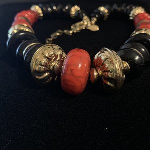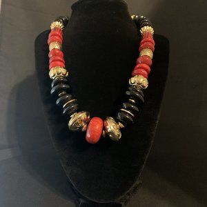 Red,black and gold tone beaded necklace by Chico