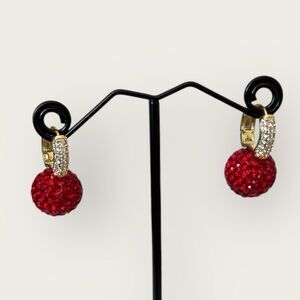 Red Christmas earrings gold plated paved clear CZ