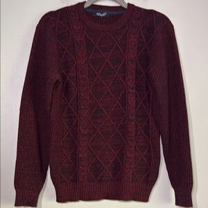 Red Crewneck Sweater with Argyle Pattern