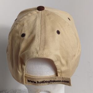 This tan and brown Red Dog Saloon Juneau Alaska cap is a one size with an adjustable velcro strap in back for that perfect fit. Pre-owned and in excellent condition. All offers welcome.