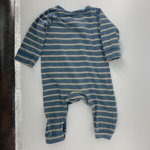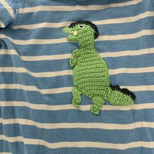 Red Egg and Ginger Blue Dinosaur Crochet Boys One Piece Striped Leg Snap Outfit Long Sleeve