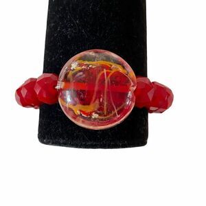 Red Faceted Beaded Stretch Bracelet w/ Dichroic Glass Centerpiece.