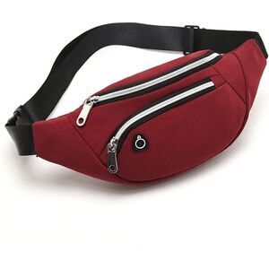 New belt bag with adjustable strap. Durable waist belt fits waists from 23 to 53 inches. 3 zippered pockets, two pockets in the front (Zippered main compartment and small front pocket) and a flat pocket in the back.