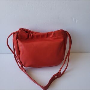 Red Faux Leather Drawstring Shoulder Bag Height 7.5in. Width 10in. Depth 3in. NWOT 2 available