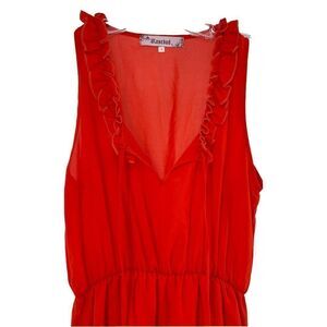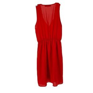 Red Fit & Flare Dress Ruffle V Neck Sleeveless Womens Size S Rosebud Knee Length