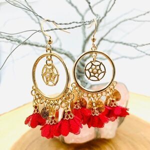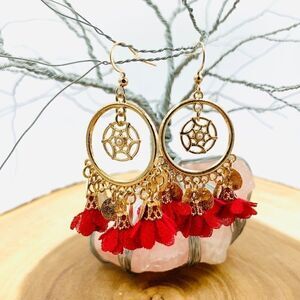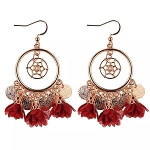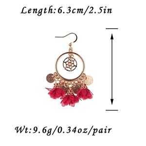 Super Cute Vintage Colors Round Dangling Pendant Earrings Woman Fabric Flowers Earring