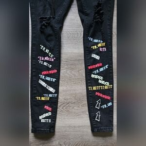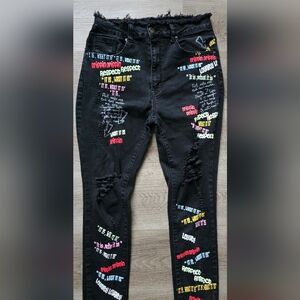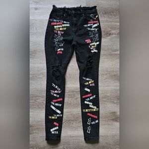 RedFox Black Graffiti Skinny Jeans – Size 15