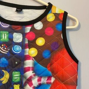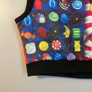 RedFox Quilted Candy Crush Game Crop Top size L. Good preowned condition. Fun all over print of stuff from the game Candy Crush. See pictures for approximate measurements. Fits smaller than size large based on measurements.