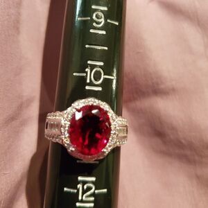 Red Glass, White CZ Ring in Silvertone (Size 11 & 6.0) 1.55 ctw