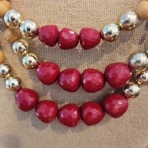 Red/Gold/Tan Faceted Bead Chunky Multistrand Necklace