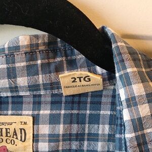 Red Head Blue Plaid Men's 2X Cotton Casual Button Down Short Sleeve Shirt