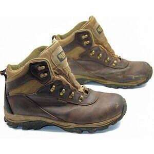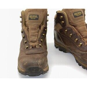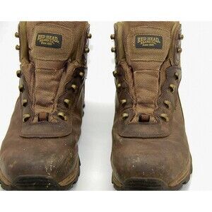 The RedHead Wildcat Boots for men in size 11.5W are designed for hiking, work, and outdoor activities. Made from waterproof brown leather with a round toe shape and ankle shaft style, these lace-up boots are ideal for rugged outdoor adventures. The solid brown color and RedHead brand logo give them a durable and stylish look, perfect for the outdoorsman on the go. These boots have obviously been used to work in but have plenty of life left. Sole looke to be in great shape. Needs new boot laces.