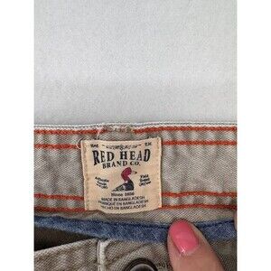 RedHead Brand Men's Size 34X30 Khaki Tan Canvas Denim Jeans Straight Leg Stretch