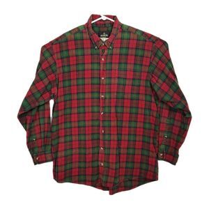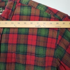 The RedHead Flannel Button-Up Shirt for men in size 2XLT Tall features a classic red and green plaid pattern, long sleeves, and a button-down collar for a traditional look. Made from comfortable cotton flannel fabric, this shirt is machine washable for easy care. With a regular fit and big and tall size type, this button-up shirt is perfect for casual wear and offers a stylish and comfortable option for men's clothing.