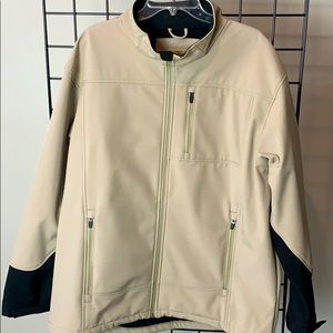 Excellent Condition! Zip closure, full fleece lining, 3 outer zip close pockets, 2 open inner pockets, adjustable Velcro cuffs, slightly longer back.
