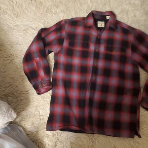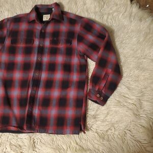 RedHead Men's Lodge Long-Sleeve Flannel Shirt in a red and black plaid pattern. It has two button-flap chest pockets and button-adjustable cuffs. The shirt is made of 100% cotton flannel, which is soft, durable, resists pilling, and is virtually shrink-free. This is gorgeous in like new condition as it was received for a gift but was too small it is fleece lined and makes the perfect year round piece.
