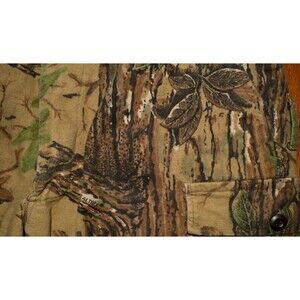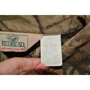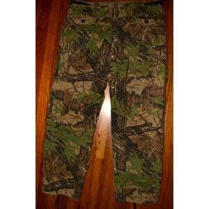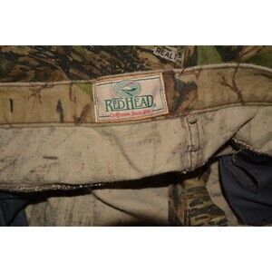 Durable RedHead Realtree camo hunting pants in mens XL Regular. Made in the USA from 100% cotton with a comfortable flannel-like lining, multiple pockets, and button/zip fly closure. Classic Realtree camouflage pattern designed for blending into wooded environments.