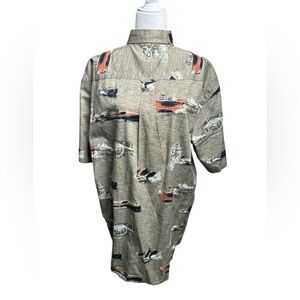 RedHead Men's Casual Tan Graphic Fishing Boat Button Down Shirt