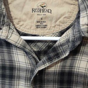 This RedHead men's shirt is a stylish addition to any wardrobe. The gray and black flannel fabric gives it a unique look and the button-down collar adds a touch of sophistication. With long sleeves and a small size, this shirt is perfect for any casual occasion. Made of high-quality fabric, it is both comfortable and durable. The button-up design is versatile and can be worn with jeans or dress pants. Get ready to elevate your wardrobe with this RedHead shirt.