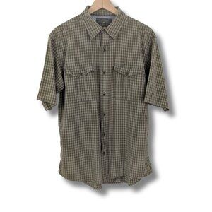 RedHead Olive Green Plaid 100% Cotton Large Short Sleeve Button Up Outdoor Shirt
