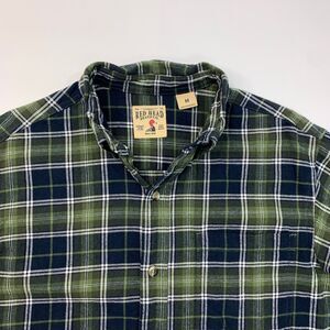 RedHead Shirt Mens M Medium Navy Green Cotton Plaid Flannel Lumberjack Outdoor