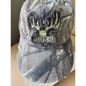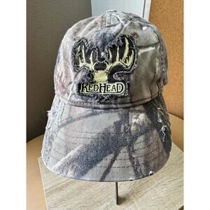 - Color/Design: Distressed camouflage with embroidered antler logo and "RedHead" text