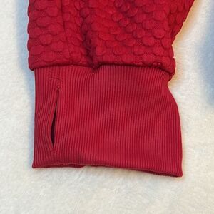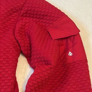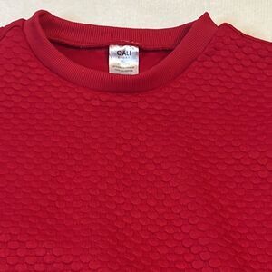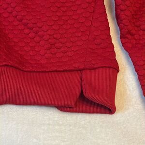 Stylish red textured crewneck sweatshirt. Perfect for casual wear.