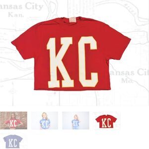 Stylish red crop top with bold KC lettering. Perfect for casual outings.