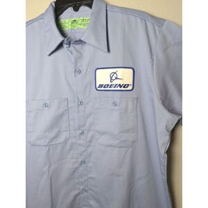 Red Kap Boeing Employee Short Sleeve Blue Cotton Button Down Shirt Men's L