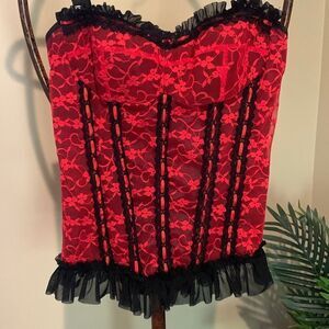 Super sexy red lace corset bustier. Detachable straps and hooks for garters if desired.